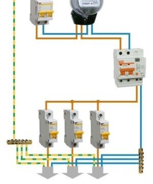 Диаграмата на свързване на дифавтоматите в мрежата 220 V е разгледана по-горе.
