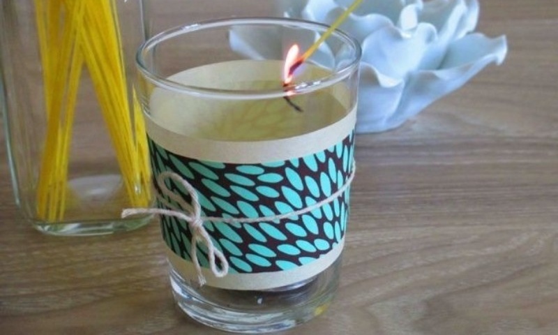 За да придадете на интериора стил, украсете го с свещници от чаши. Избършете ги старателно и поставете малки свещи в тях.
