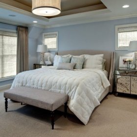 Можете да поставите възглавници и каре в ярки цветове на леглото, да украсите стените с панел, огледало или черно-бели снимки.