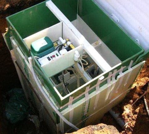 Все още има разнообразие от устройства, които изискват електричество за работа. Това са аеробни септични ями със система за биологично пречистване. Пречистването на отпадните води в такива устройства се извършва от аеробни микроорганизми, които не могат да съществуват без кислород. Следователно компресор, който автоматично се включва на редовни интервали, доставя въздух в резервоарите. Процесът на разлагане на отпадъчните води в такива инсталации е възможно най-бърз. Степента на пречистване на замърсена вода достига 98%.