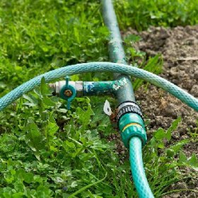 - В зависимост от местоположението на леглата се определя броят на точките на потребление. За да не се налага да влачите маркуча около цялата област, по-добре е да премахнете тръбите на 5-10 места. Три до пет метра парчета маркуч лесно се свързват към такива хидранти и се полива отделна секция. Във всяка точка на консумация се монтира байонет за бързо свързване. Можете също да инсталирате автоматична система за пръскане.
