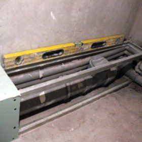 След това монтирайте релсите на тавана и пода.