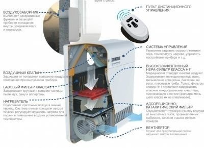 - вентилатор - компактно устройство под формата на стенно устройство, което се адаптира към промените във външната среда, което е оборудвано със стъпка по стъпка система за пречистване на въздуха и разполага с цифров панел и дистанционно управление.
