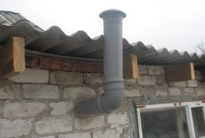 - тръба за всмукване на въздух е инсталирана над покрива с 40 см, долният му край остава да виси над пода с 30 см;