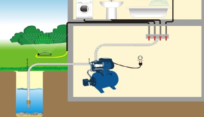 Автономна водопроводна система на селска къща с помпена станция, осигуряваща достатъчно водно налягане в тръбите